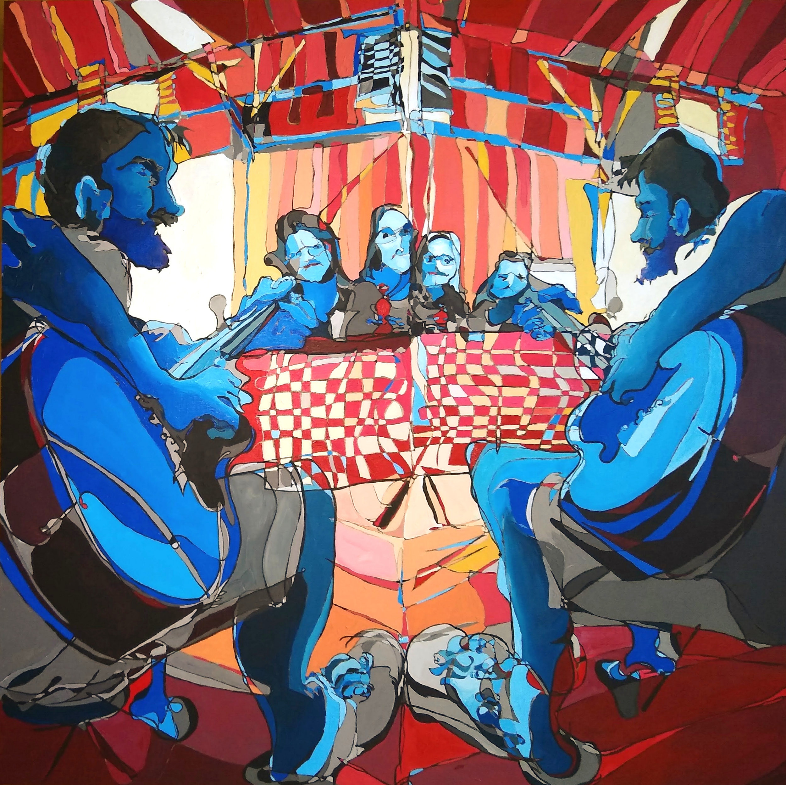 We Are The Sacristans: Mealtime, acrylic on panel, 48x48 inches, 2021